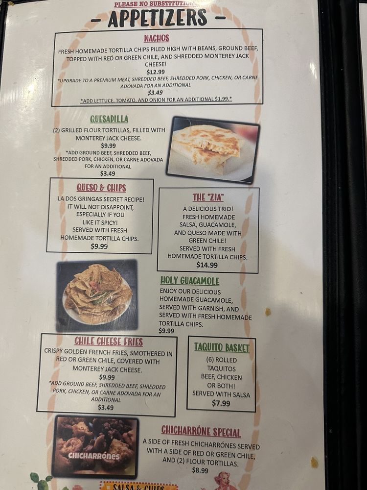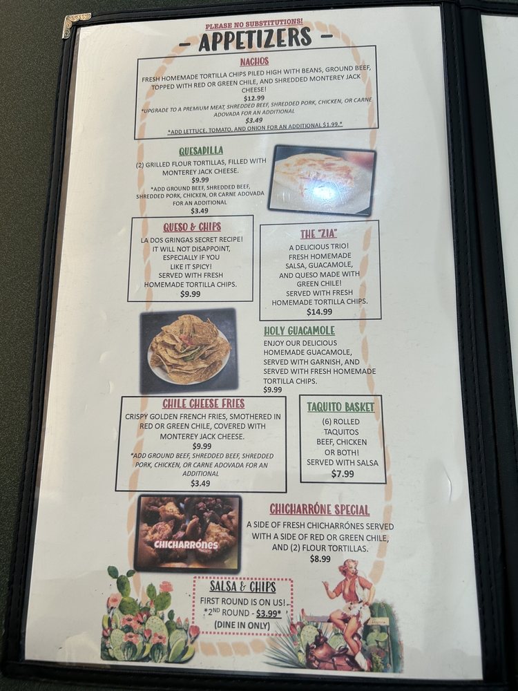 La Dos Gringas Menu (Update 2025)